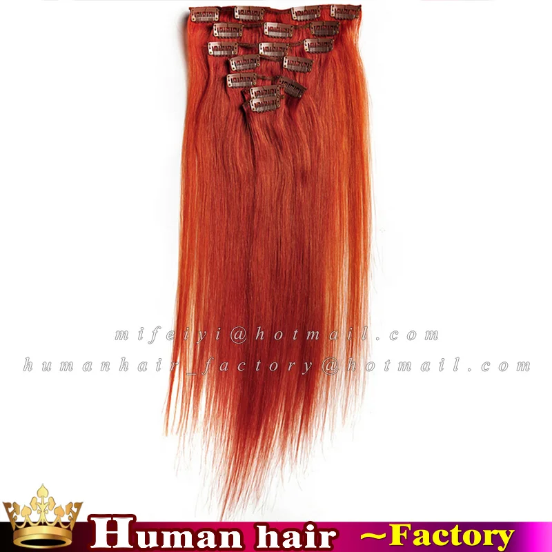 Full Head Remy Clip In Human Hair Extensions Bright Red