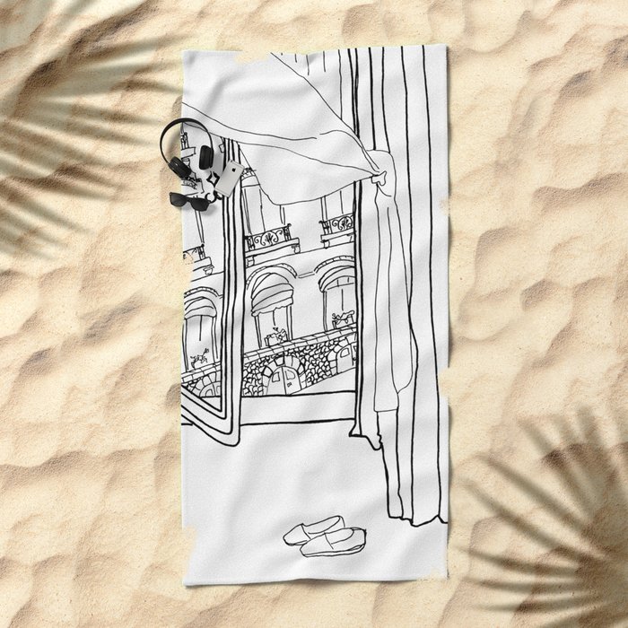 Window View In France Ink Drawing Beach Towel By Christianalois