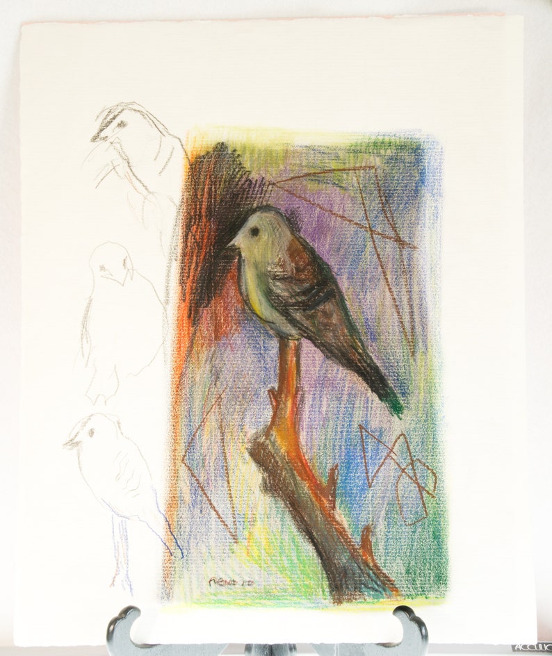 Drawing Oil Pastel Original Art Colorful Bird Bird Sketches Etsy