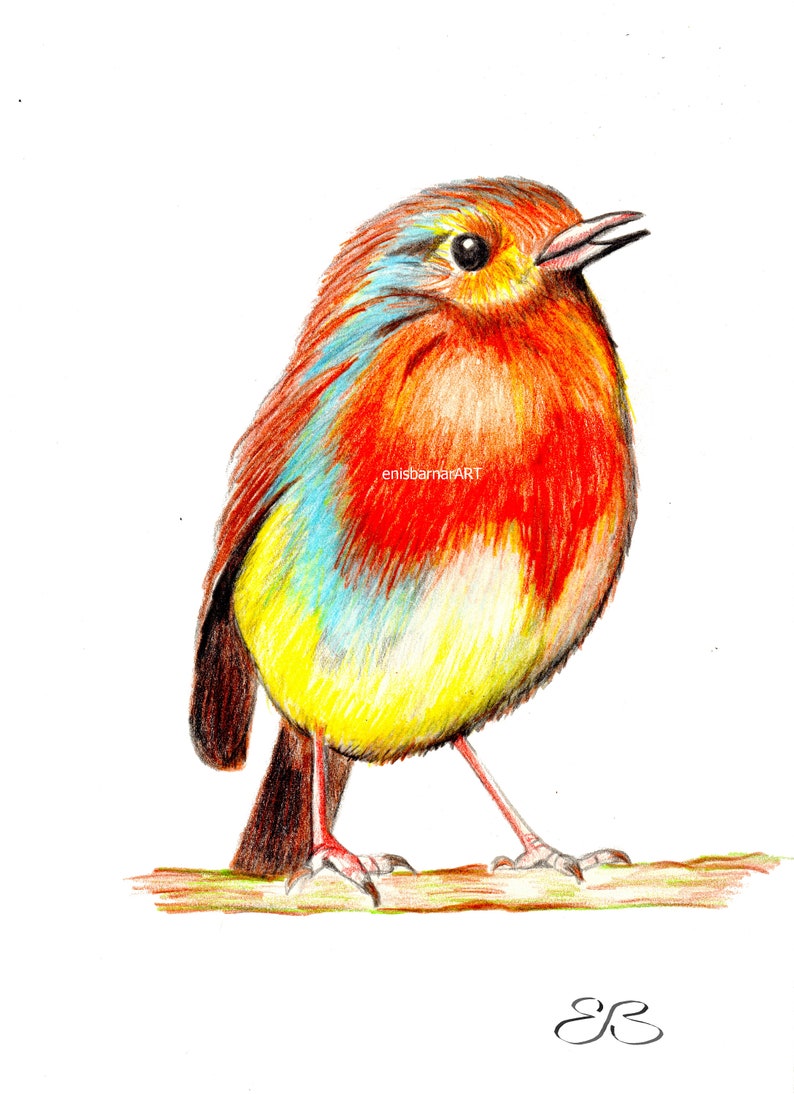 Bird Small Bird Fat Cute Bird Color Pencil Drawing Etsy
