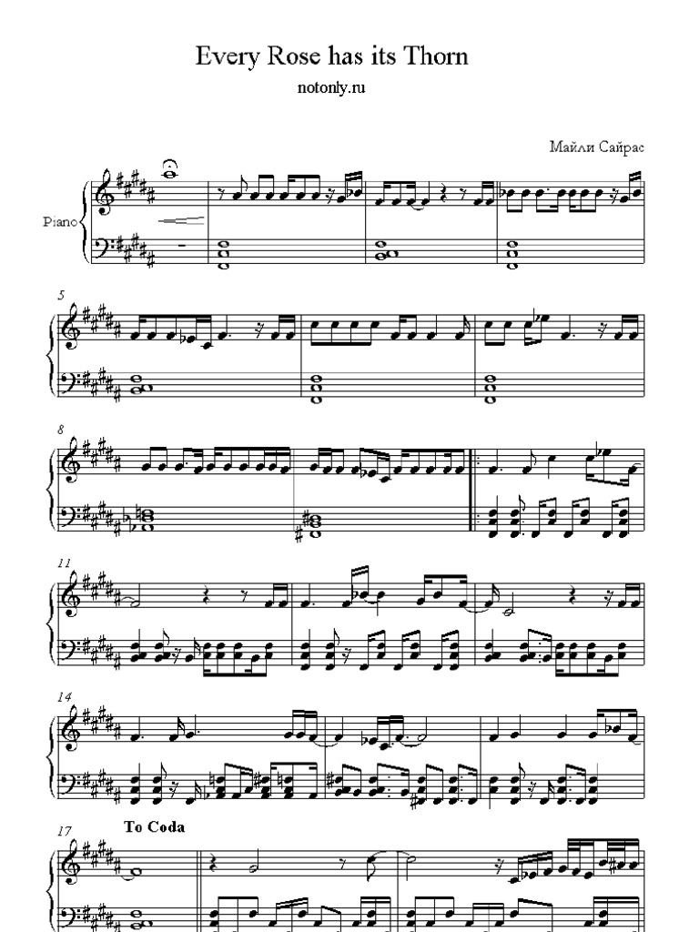 Cyrus Every Rose Has Its Thorn Sheet Music For Voice Piano Or Guitar