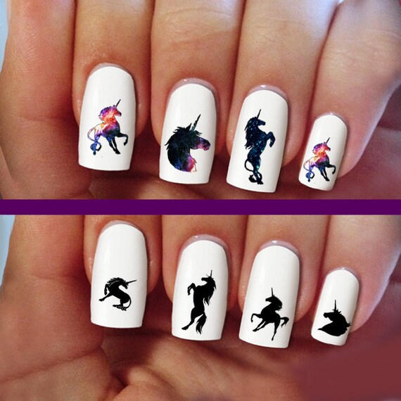 Galaxy Unicorn Nail Decals Nail Art Nail Art Design Water Slide Nail Decals Uni004 Set 60pc