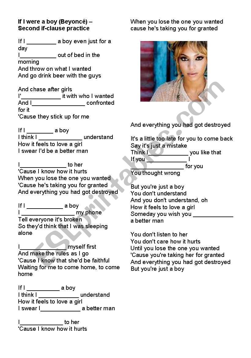 If I Were A Boy Beyonce 2nd If Clause Practice Esl Worksheet