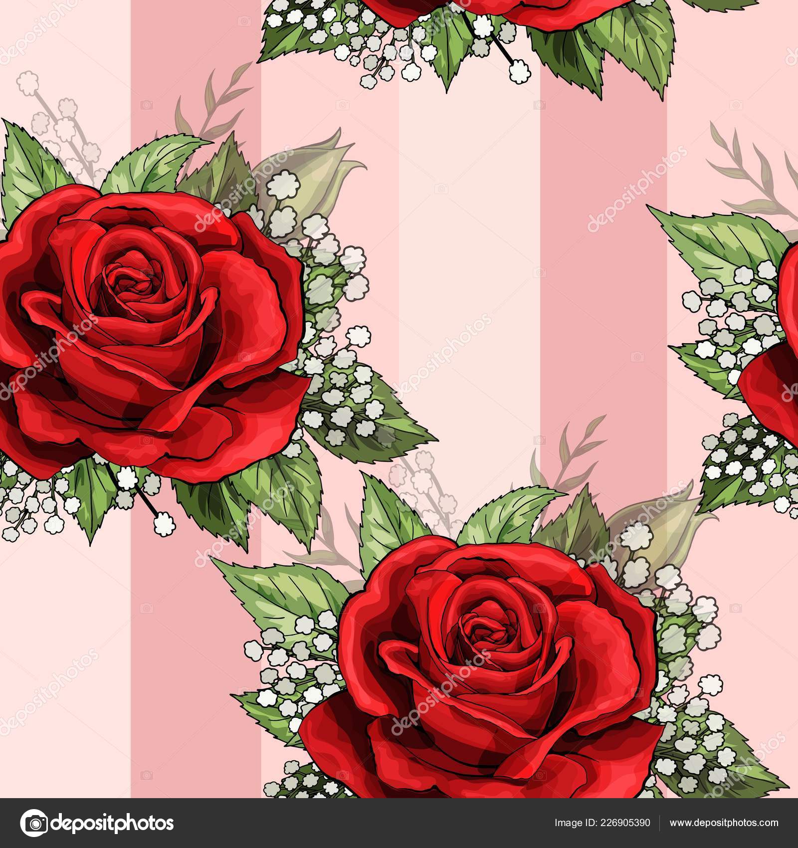 Red Rose Flower Bouquet Spreads Creeper Elements Seamless